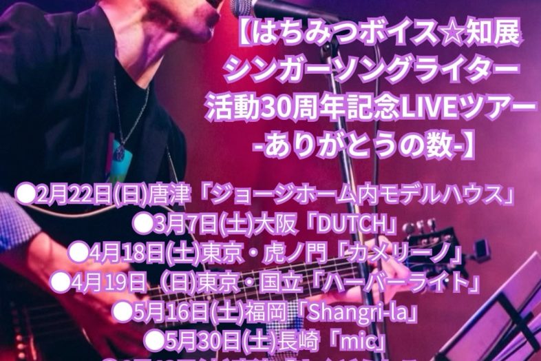 30周年ツアースケジュール【はちみつボイス☆知展 シンガーソングライター活動30周年記念LIVEツアー-あ