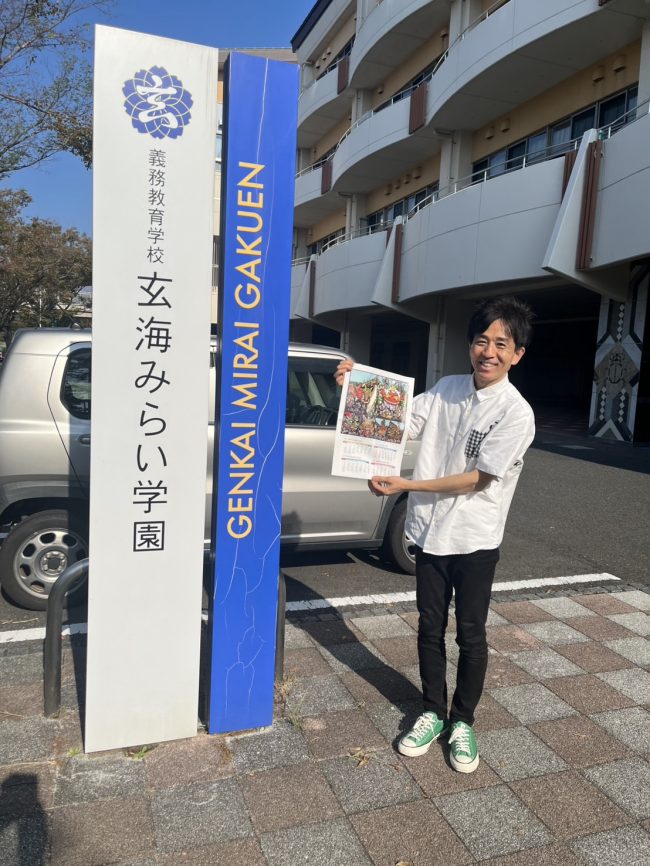 玄海町の教育長・岩崎一男先生は、学校の先生であり教育長、そしてアーティストです。