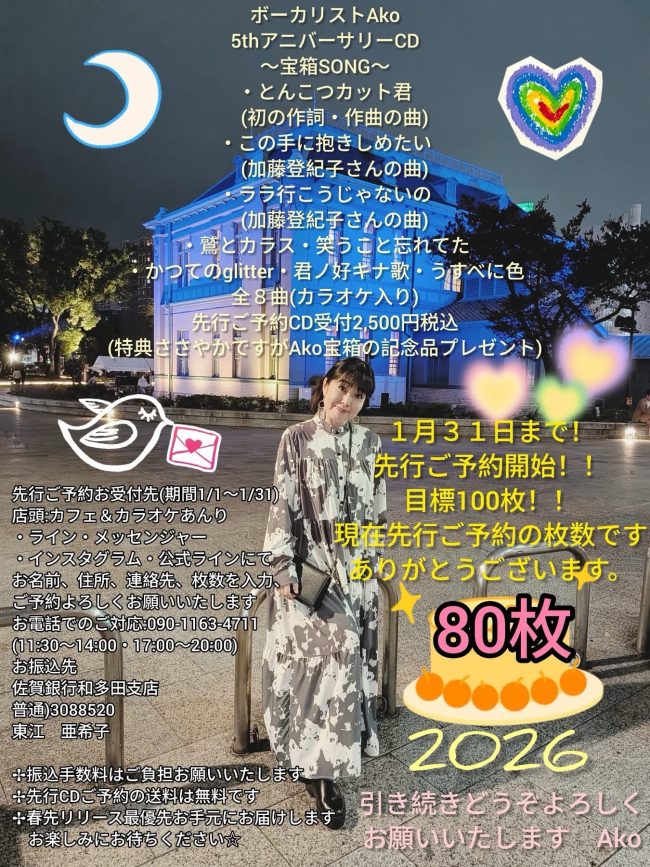 Akoさんのニューアルバム『私の宝箱〜全部〜』の先行予約が80枚まで来た!!