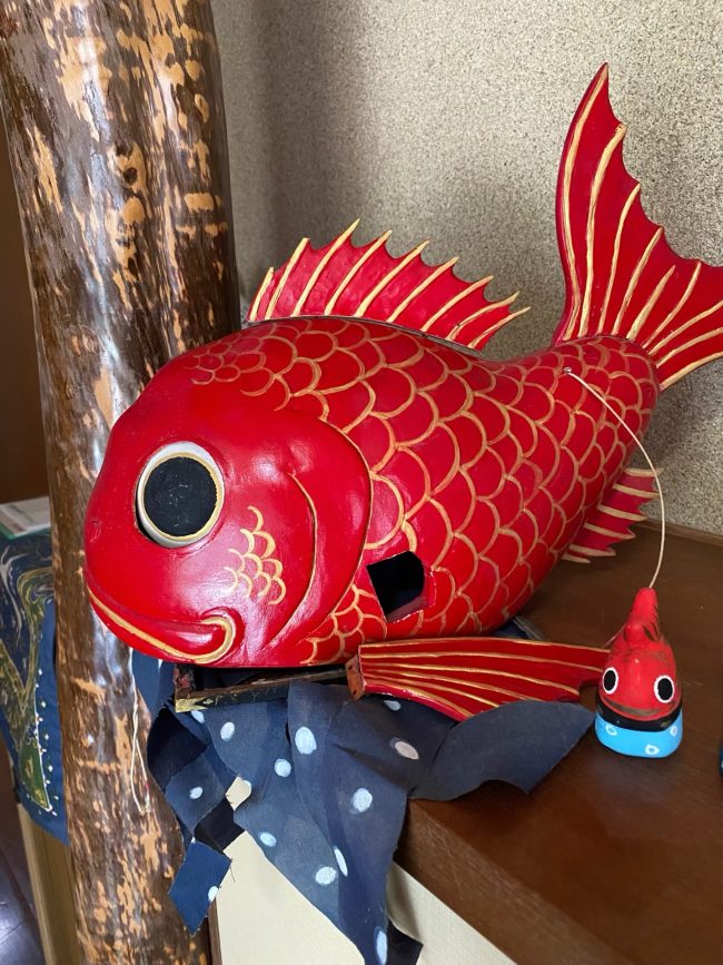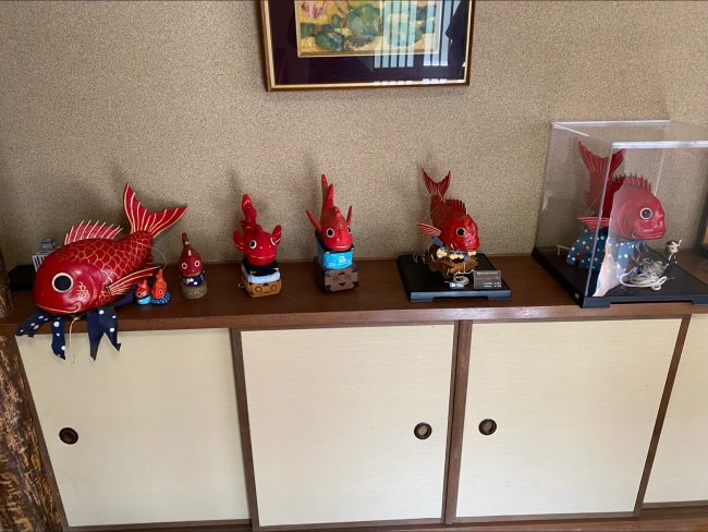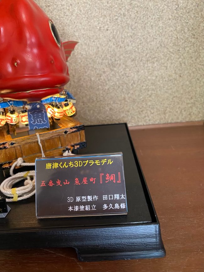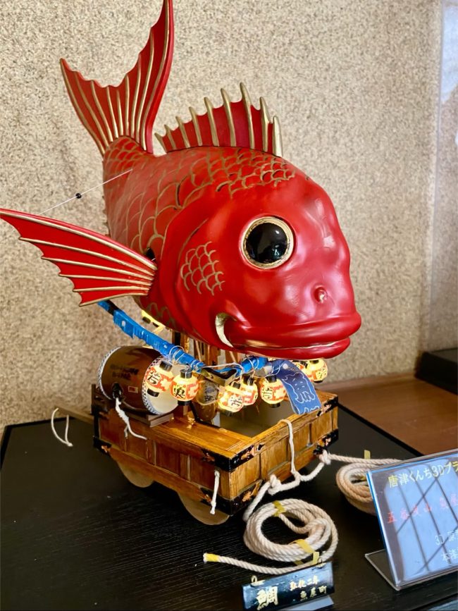 立派なお宅にご案内頂いて、玄関を開けましたら唐津くんちの5番曳山「鯛」が美しく並んでいるではないですか。