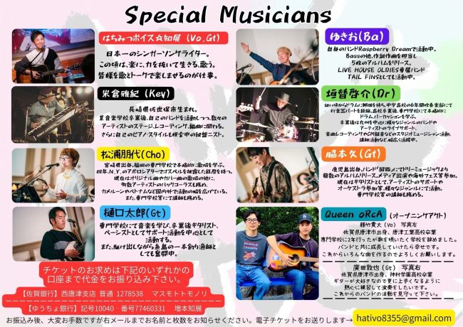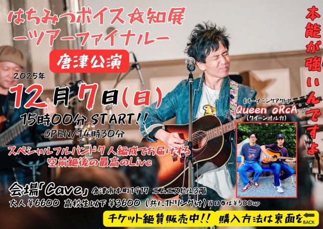 📍12月7日(日)は7人編成のスペシャルフルバンドライブ。オープニングアクトに唐津の若手ユニット「Queen oRcA(クイーンオルカ)」も出演。