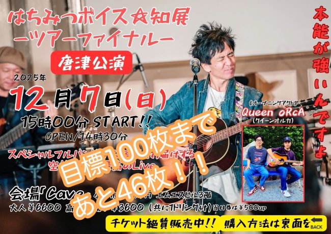 📍12月7日(日)は7人編成のスペシャルフルバンドライブ。オープニングアクトに唐津の若手ユニット「Queen oRcA(クイーンオルカ)」も出演。