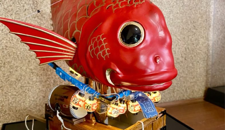 唐津くんち 鯛曳山【精巧に作られた鯛曳山が素晴らしい、多久島さんのお宅にて】 立派なお宅にご案内頂いて、玄関を開けましたら唐津くんちの5番曳山「鯛」が美しく並んでいるではないです
