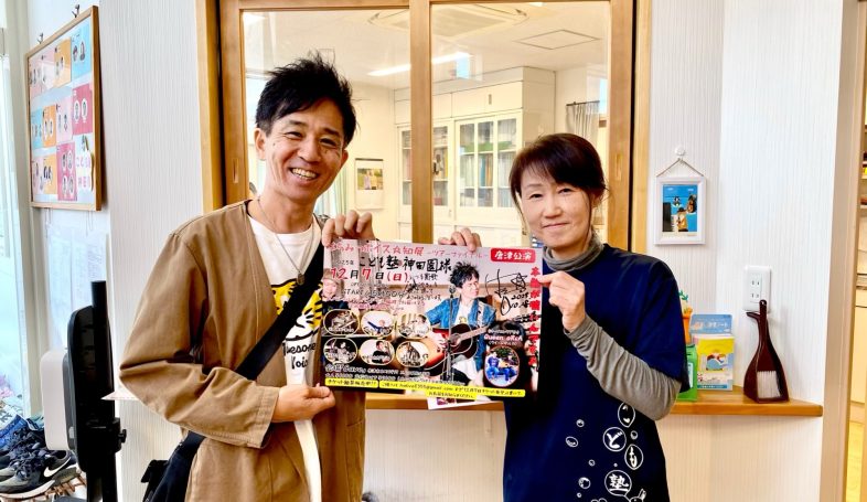 北海道産 相知町にて加工唐津駅前。 12月7日(日)のライブチケットを買って下さったジョン先輩と。 チケットを購入して下さった上に、僕にプレゼントまで下さいました。 そのお品は北海道産